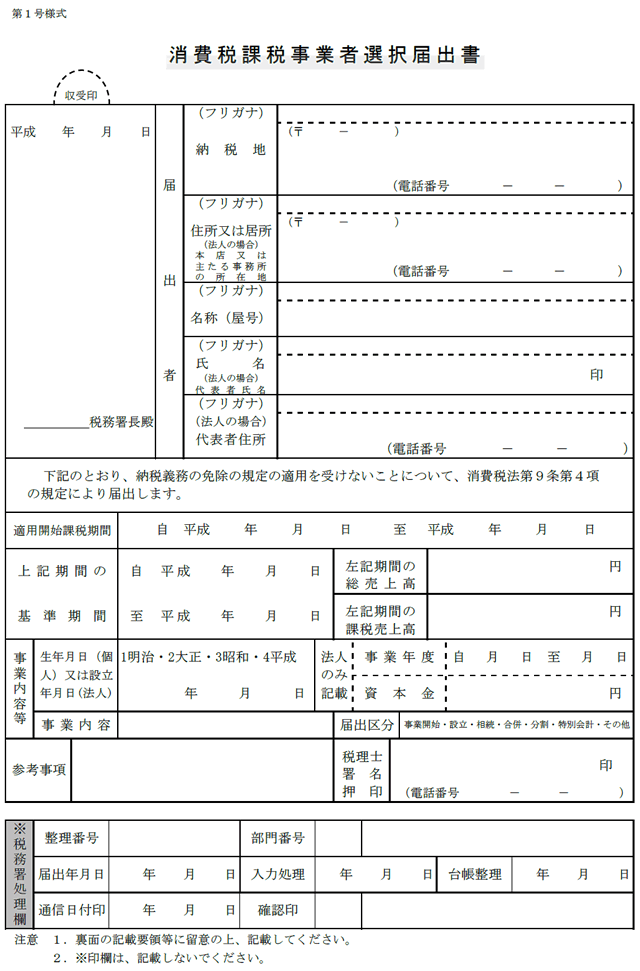 免税事業者が課税事業者になることを選択する場合の手続です。